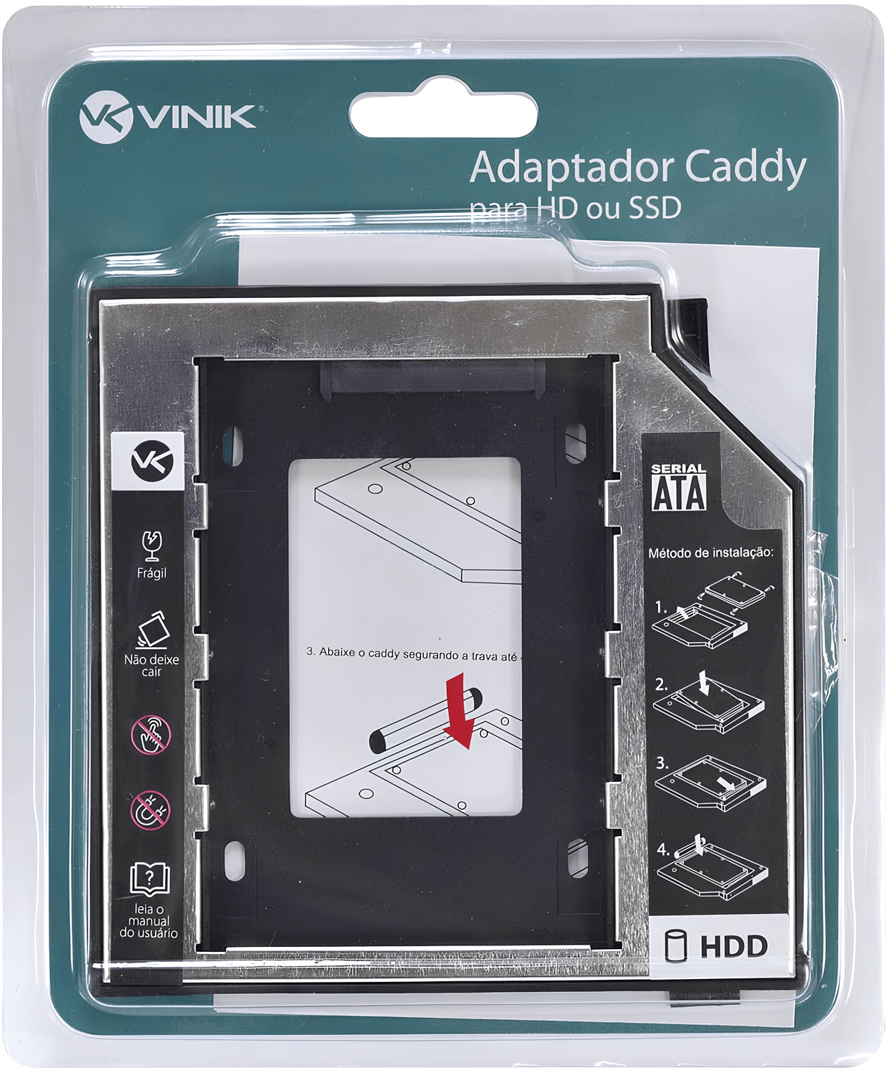 O Caddy Vinik AC-127 é a solução ideal para quem deseja expandir a capacidade de armazenamento do notebook. Com ele, é possível substituir o drive de DVD por um HD ou SSD adicional de 2.5", aproveitando ao máximo o espaço interno do equipamento.