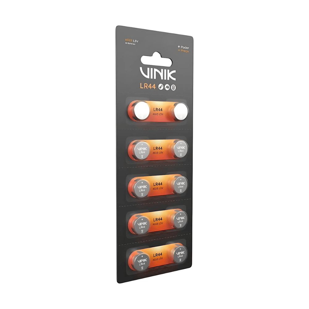 A Bateria Alcalina LR44 Vinik VB44B10 é a escolha ideal para quem busca desempenho confiável e durabilidade em dispositivos eletrônicos de pequeno porte. Desenvolvida com tecnologia alcalina, oferece energia estável e eficiente, garantindo funcionamento contínuo e seguro.