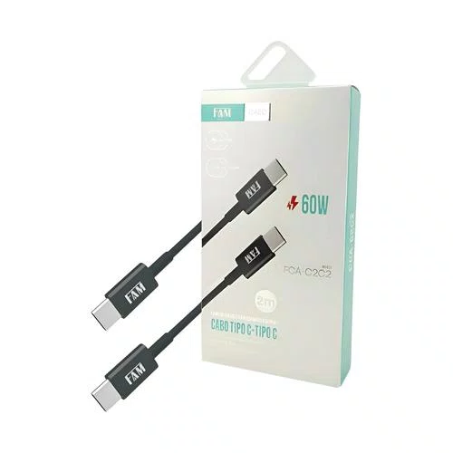 O cabo USB Tipo-C para Tipo-C FAM FCA-C2C2 foi desenvolvido para garantir carregamento eficiente e transferência de dados estável em dispositivos compatíveis com padrão USB-C. Com suporte a até 60W de potência (3A), é ideal para uso com smartphones, tablets, notebooks e outros equipamentos modernos que utilizam conexão Tipo-C.