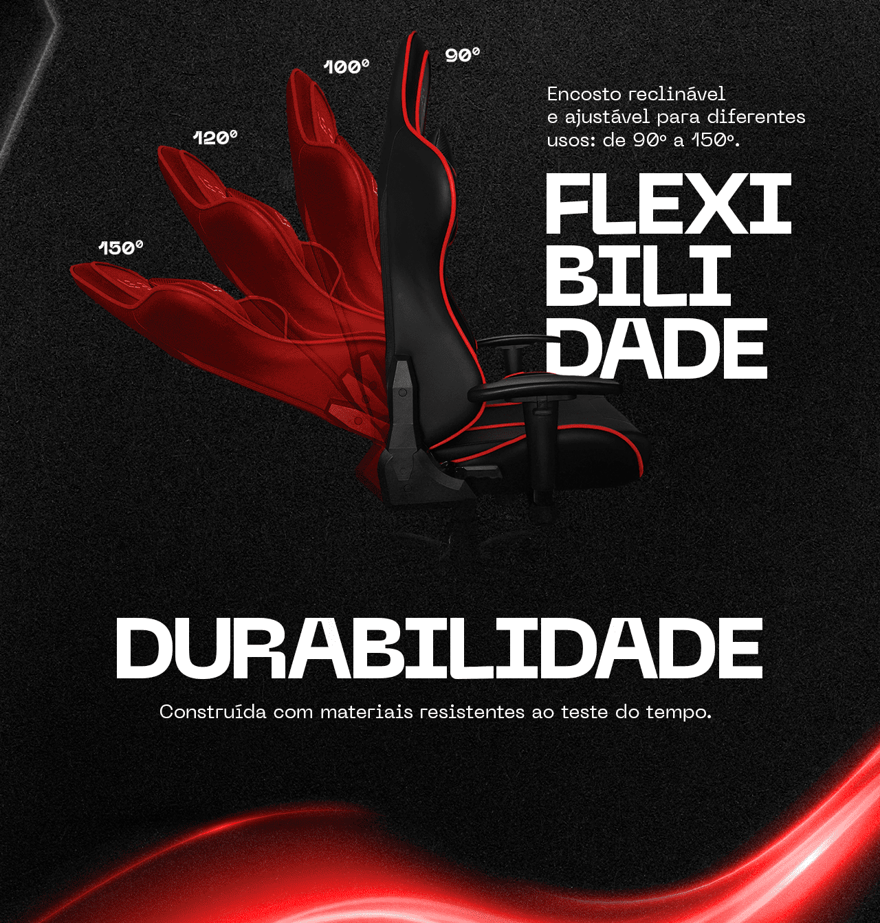 O modelo LV-C01DN da marca Level oferece uma combinação de design ergonômico, conforto e suporte para longas sessões de uso — seja em jogos, estudos ou trabalho. Com acabamento em preto e vermelho, esta cadeira gamer suporta até 100 kg e conta com encosto reclinável, apoio de braço ajustável e estrutura pensada para o uso prolongado.