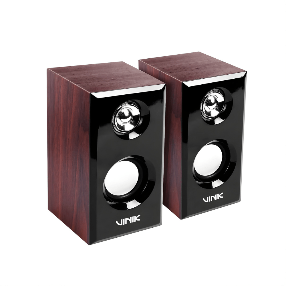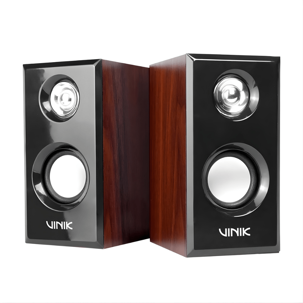 A Caixa de Som Vinik Wood WD6W foi desenvolvida para entregar áudio claro e equilibrado aliado a um design elegante com acabamento em preto e madeira. Com configuração de canais 2.0, alto-falantes de 52 mm e potência total de 6W RMS, é ideal para músicas, vídeos, filmes e conteúdos do dia a dia.