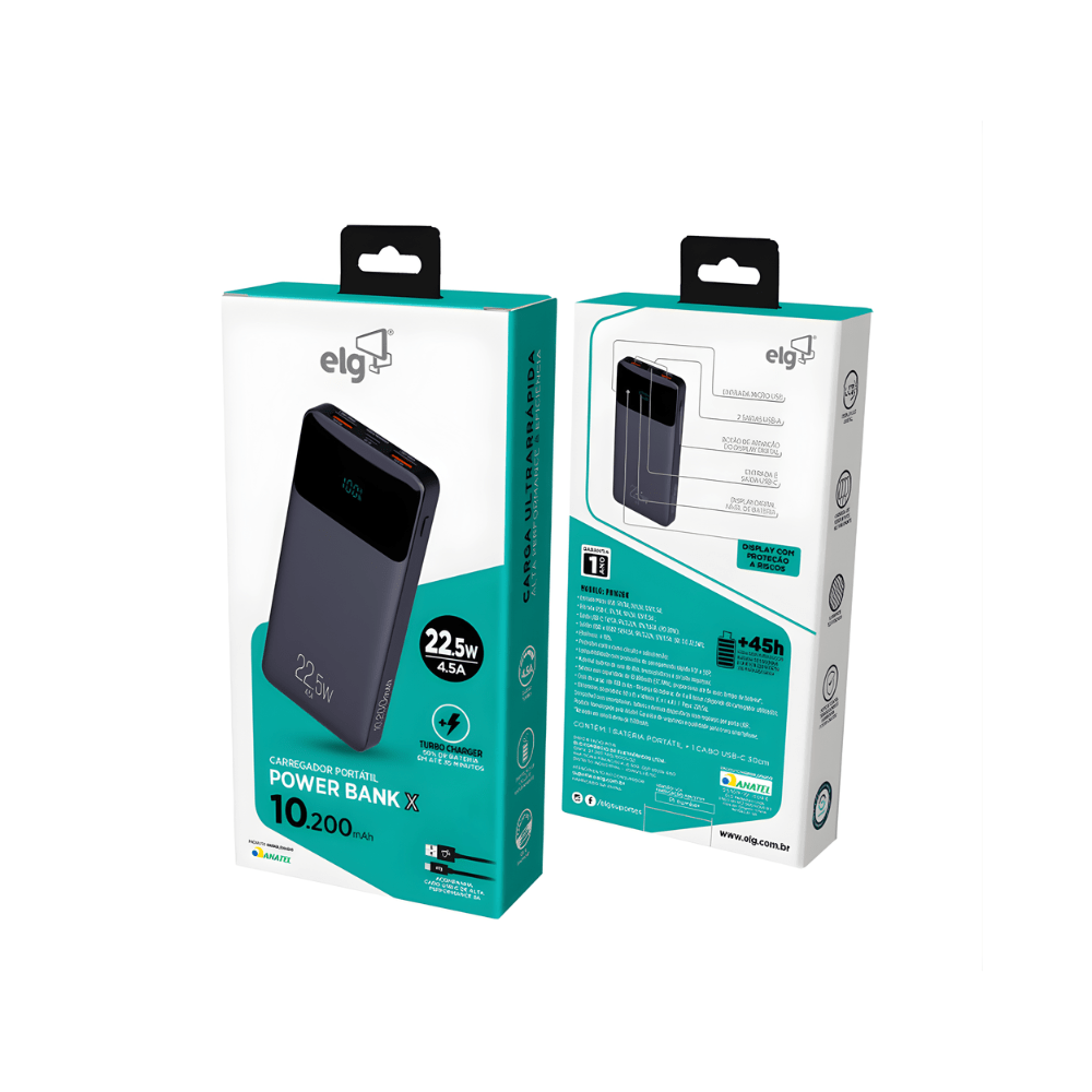 O Powerbank ELG PB102BK foi desenvolvido para oferecer praticidade e autonomia no carregamento de dispositivos móveis durante o dia a dia. Com capacidade de 10200mAh, ele garante múltiplas recargas para smartphones, mantendo seus aparelhos sempre prontos para uso, mesmo longe de tomadas.