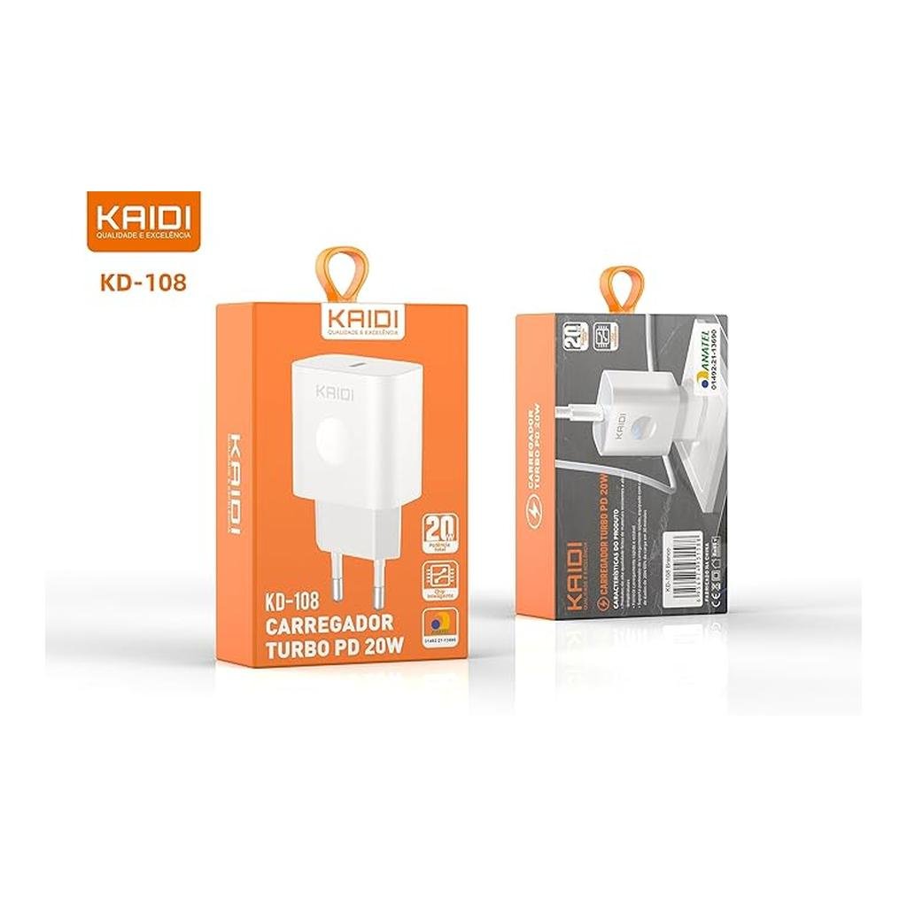 O Carregador Kaidi KD108C entrega carregamento rápido e eficiente com potência de 20W, ideal para smartphones e dispositivos compatíveis. Acompanha cabo USB-C, garantindo praticidade e versatilidade no uso. Compacto e leve, é perfeito para uso diário e viagens.