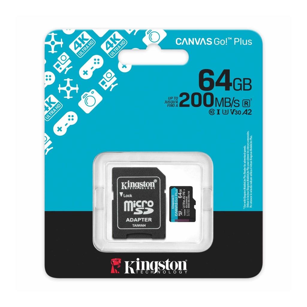 Cartão De Memória Micro SD 64GB Canvas Go Plus C/Adaptador Kingston SDCG4/64GB