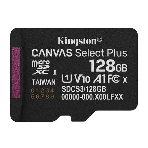 Cartão de Memória microSDXC Kingston Canvas Select Plus 128GB Classe 10 UHS-I A1 V10 com Adaptador SD
