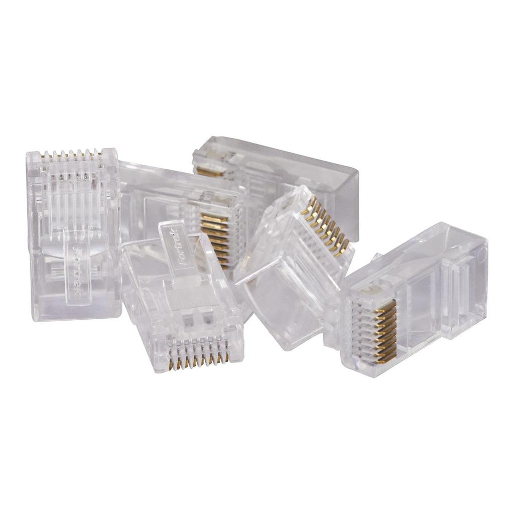Ideal para quem deseja montar ou reparar cabos de rede Cat5e, garantindo conexões rápidas e confiáveis para redes domésticas ou empresariais. Recomendado o uso com ferramentas apropriadas para crimpagem para assegurar a qualidade da conexão.