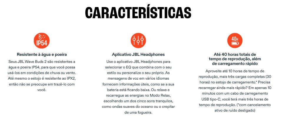 Compacto e ergonômico, o modelo foi desenvolvido para encaixe confortável e uso prolongado. Além disso, oferece até 40 horas de reprodução total (com o cancelamento desligado), conexão Bluetooth 5.3 e compatibilidade com o aplicativo JBL Headphones, onde é possível personalizar o som e os comandos.
