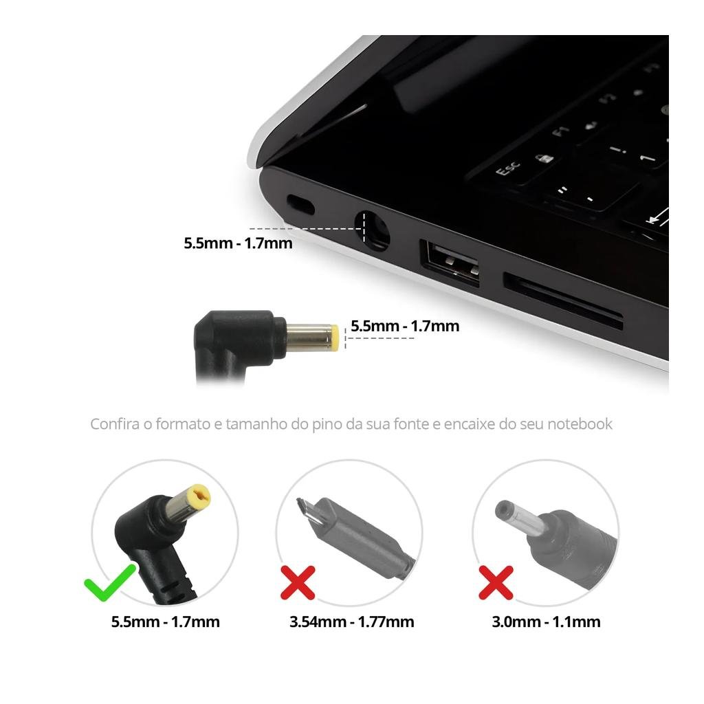 Indicada para usuários de notebooks Acer que necessitam substituir a fonte original ou manter uma fonte reserva, garantindo carregamento seguro e eficiente em qualquer situação.