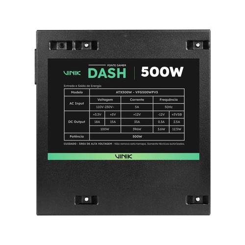 Fonte Gamer ATX 500W Dash Vinik VFG500WPV3 Preto