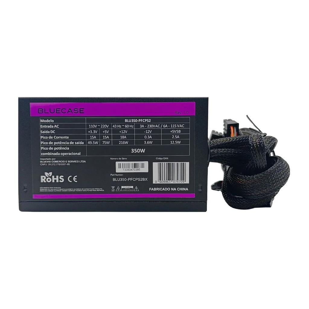 Fonte P/Gabinete ATX Bluecase BLU350-PFCPS2 350W PFC Ativo C/Cabo