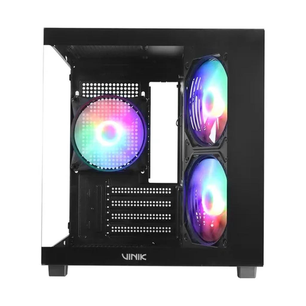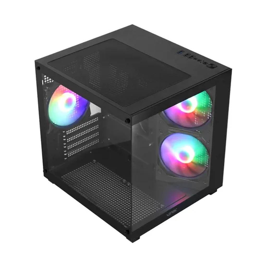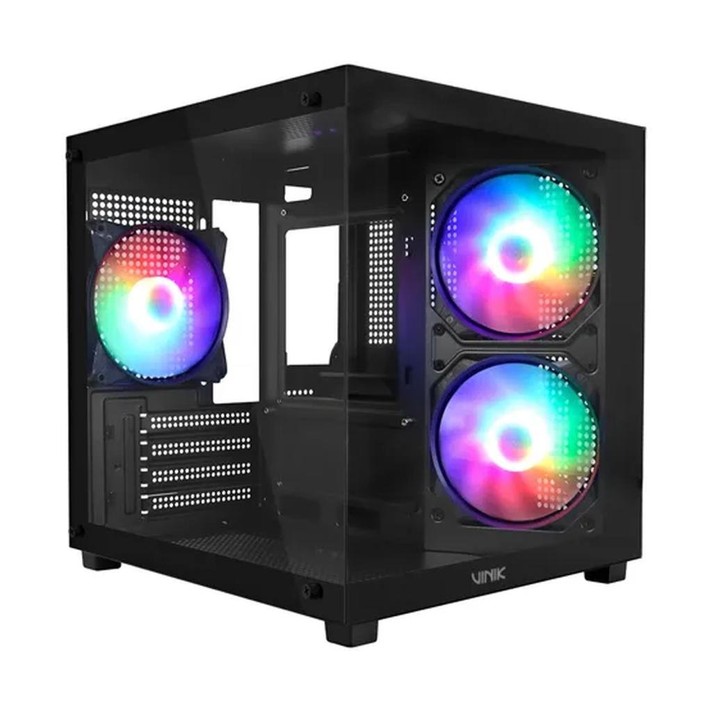 O Gabinete Gamer Vinik G-Cube é a escolha ideal para quem busca design moderno, eficiência na refrigeração e praticidade na montagem. Com lateral e painel frontal em vidro temperado, proporciona um visual sofisticado para destacar os componentes internos. Já vem equipado com 3 fans, garantindo um excelente fluxo de ar e suporte para até 7 ventoinhas no total.