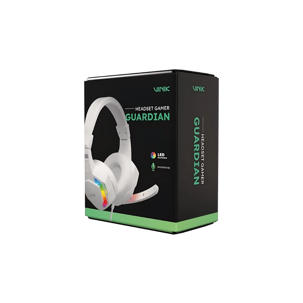 O Headset Gamer Vinik Guardian VKHSGGDB foi desenvolvido para proporcionar uma experiência imersiva em jogos, unindo conforto, qualidade sonora e um visual moderno. Com design na cor branca e iluminação LED Rainbow, ele adiciona estilo ao setup enquanto entrega desempenho ideal para partidas, músicas e comunicação.