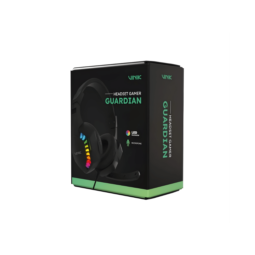O Headset Gamer Vinik Guardian VKHSGGDP foi desenvolvido para oferecer uma experiência sonora imersiva, aliando conforto, potência e um visual gamer moderno. Com acabamento na cor preta e iluminação RGB Rainbow, ele se destaca no setup enquanto entrega desempenho ideal para jogos, músicas e comunicação.