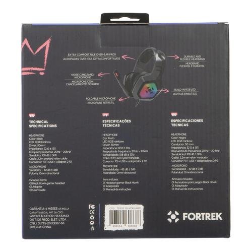 Headset Gamer P3 2,2M Fortrek Black Hawk RGB Preto 70530