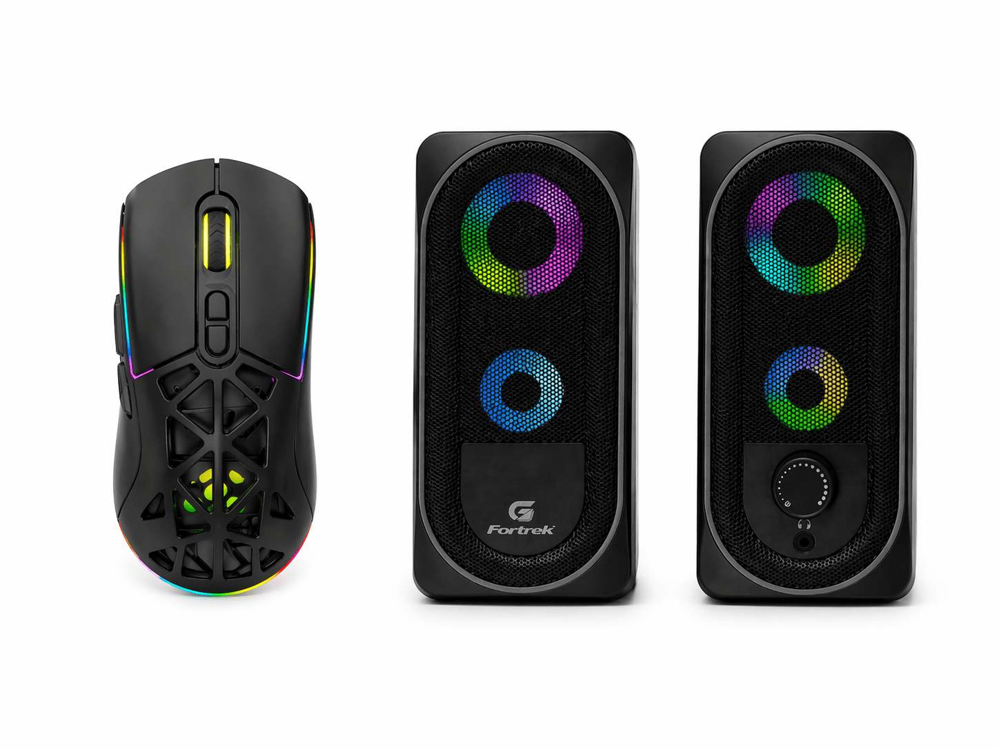 Kit Gamer: Mouse Fortrek Wireless Striker Air, Caixa de Som Black Hawk