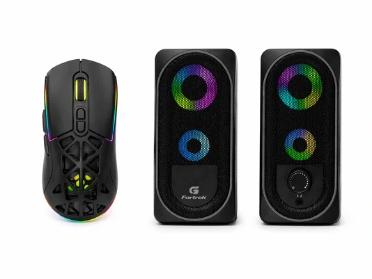 O combo ideal para quem busca elevar o nível do setup com mais desempenho, conforto e imersão. Com o Mouse Gamer Wireless Fortrek Striker Air e a Caixa de Som Gamer Black Hawk, você tem liberdade de movimento, precisão nos comandos e um áudio envolvente para tornar sua experiência muito mais completa, seja em jogos ou no uso diário.