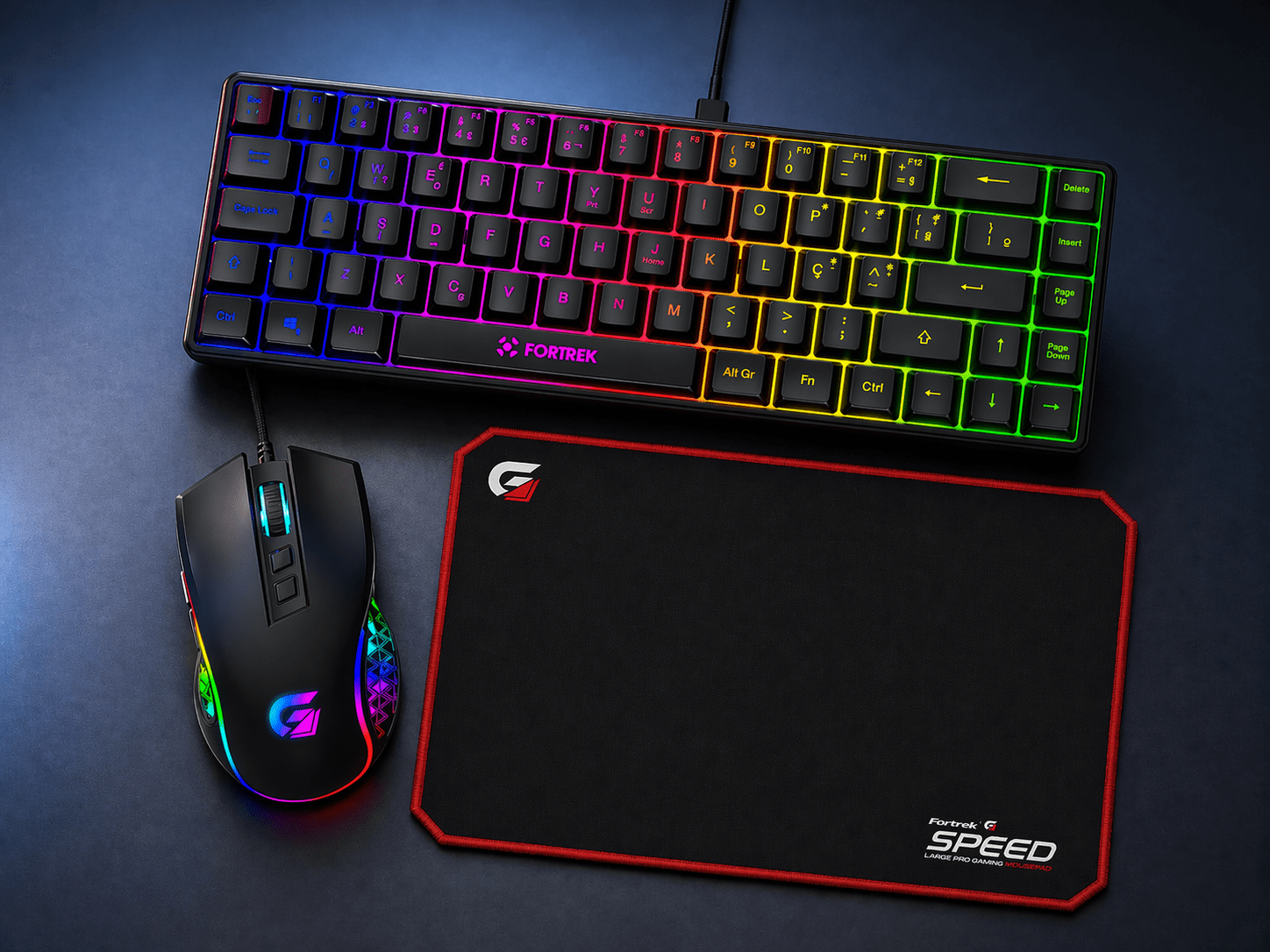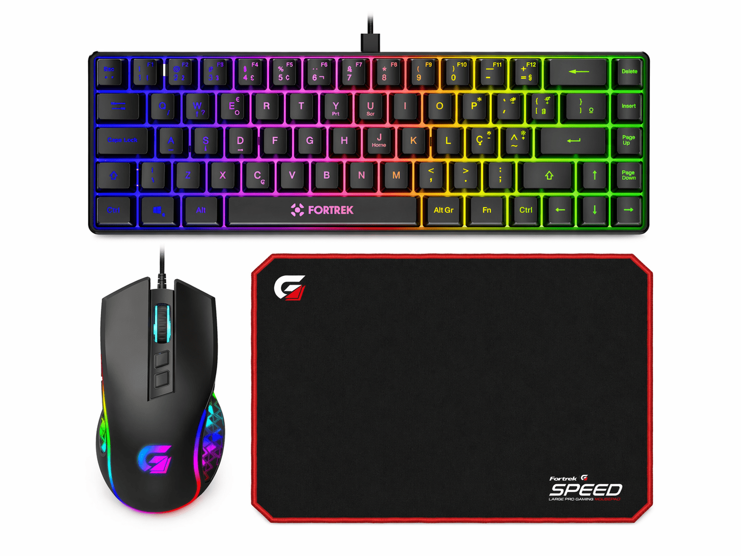 TECLADO GAMER MEMBRANA FEARLESS 65 COMPACT RAINBOWCor: Único Tamanho: ÚnicoMouse Gamer Vickers New Edition 7 botões 8000 Dpi RGB Preto - FortrekCor: Único Tamanho: ÚnicoMouse Pad Gamer 350x440mm Speed MPG102 Preto / Vermelho FORTREKCor: Único Tamanho: Único