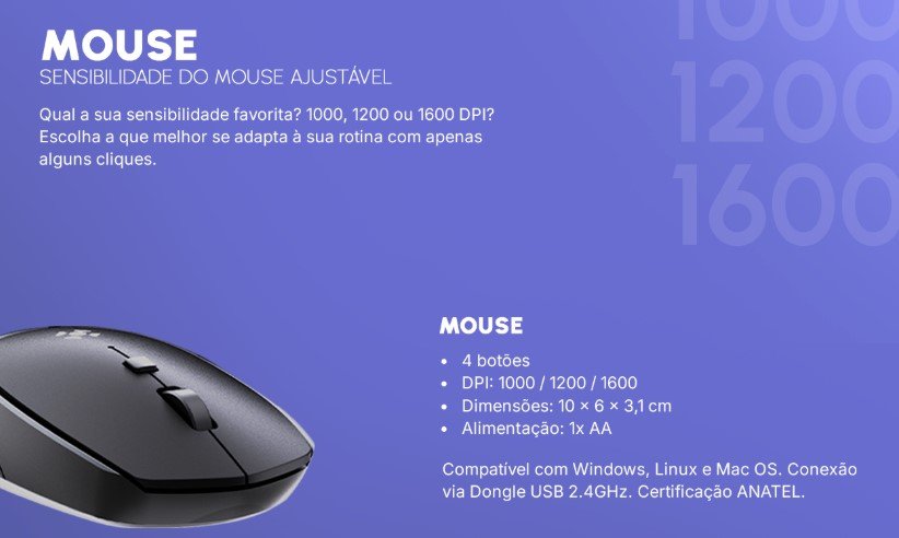 Este conjunto é ideal para quem busca uma solução eficiente e compacta, unindo teclado com design ergonômico e mouse preciso para aumentar a produtividade.