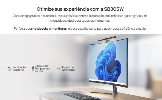 A Luminária PCYes SB305W foi desenvolvida para proporcionar iluminação confortável e eficiente para quem passa longas horas em frente ao computador. Seja para trabalho, lazer ou estudo, ela garante um ambiente mais agradável, reduzindo o cansaço visual e aumentando a produtividade.