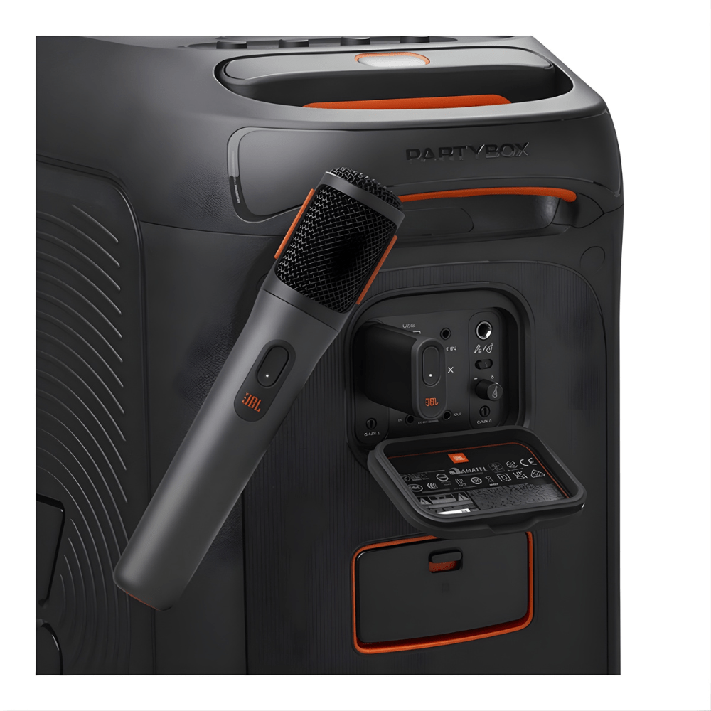 O Microfone Sem Fio JBL PartyBox PBWIRELESSMICBLK foi desenvolvido para oferecer alta performance, liberdade de movimento e qualidade sonora excepcional em festas, eventos e apresentações. Basta conectá-lo a qualquer caixa da linha JBL PartyBox ou utilizar o dongle incluso para aproveitar uma conexão sem fio estável e prática.