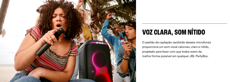 Recomendado para usuários que buscam microfones sem fio de alta qualidade para festas, karaokê, eventos e apresentações, garantindo clareza vocal, liberdade de movimento e uma experiência sonora profissional com as caixas JBL PartyBox.