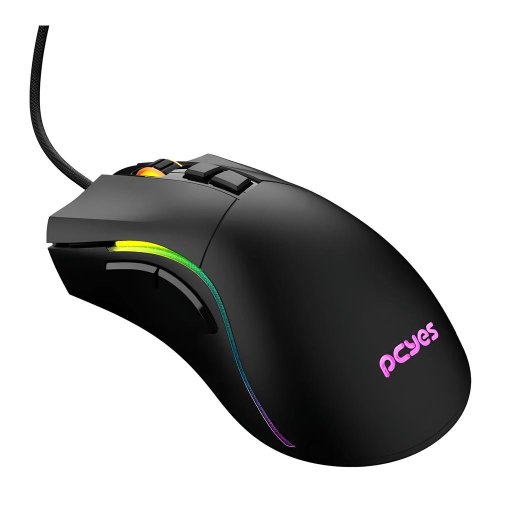 Mouse Gamer Pcyes Valus, RGB, 12400 DPI, 8 Botões, Sensor Pixart PWM3327, Switches Kailh, Ergonômico – Preto