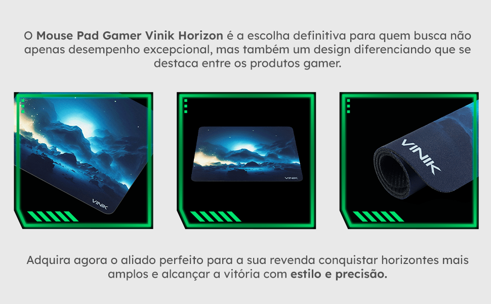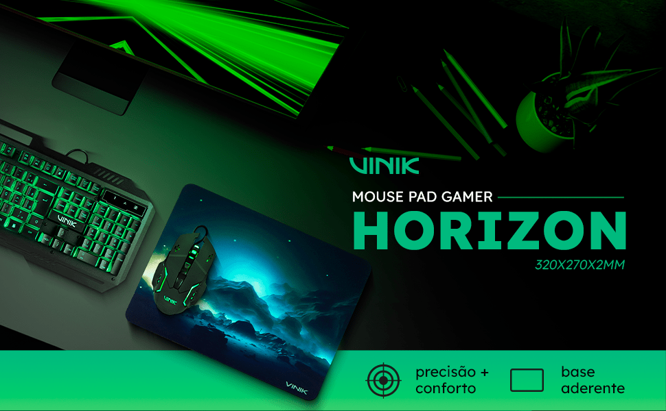 O Mouse Pad Gamer Vinik Horizon MPH32 foi desenvolvido para oferecer maior precisão e controle nos movimentos durante jogos ou uso diário. Com superfície otimizada, ele proporciona deslizamento suave e consistente, garantindo melhor desempenho em diferentes tipos de sensor.