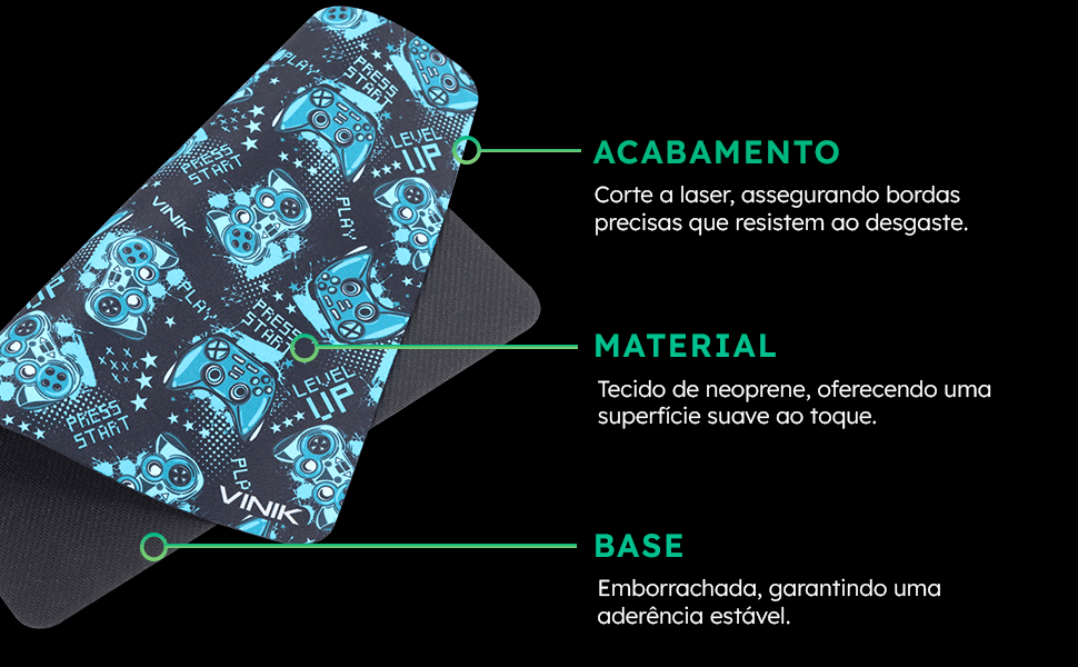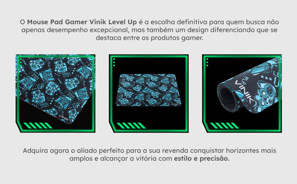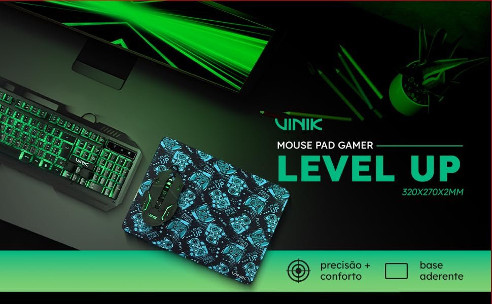O Mouse Pad Gamer Vinik Level Up MPLU32 foi desenvolvido para oferecer maior precisão e controle nos movimentos durante jogos ou uso diário. Com superfície otimizada, ele proporciona deslizamento suave e consistente, garantindo melhor desempenho em diferentes tipos de sensor.