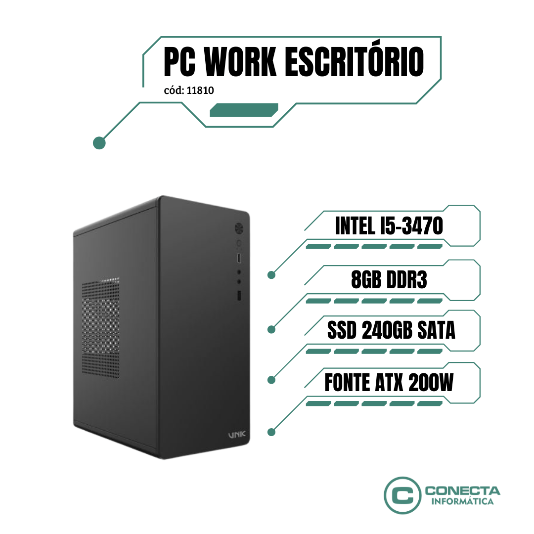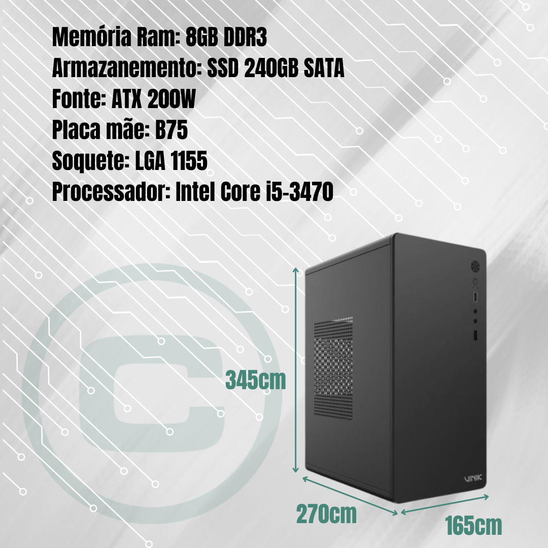 PC Work Intel Core i5-3470, B75, 8GB DDR3, SSD 240GB, Fonte ATX 200W