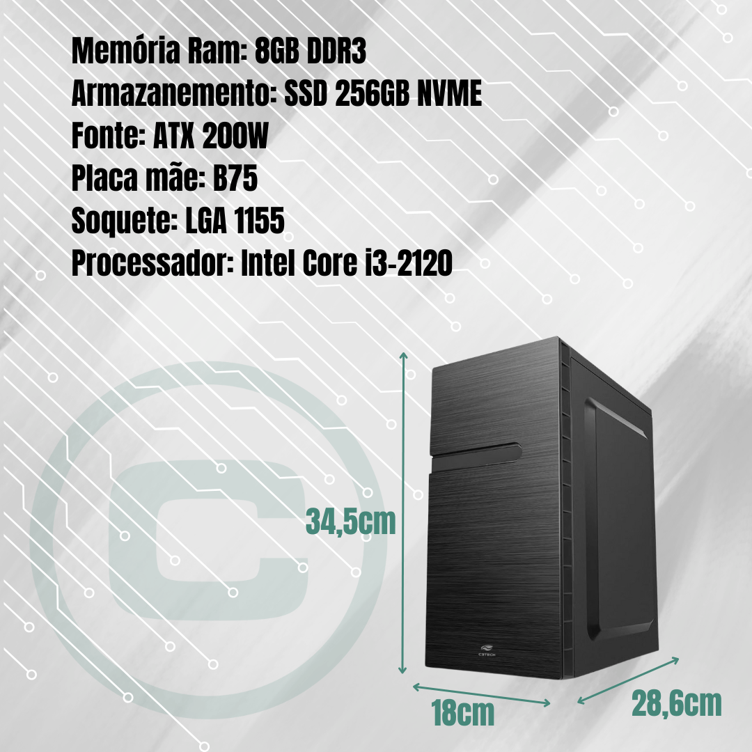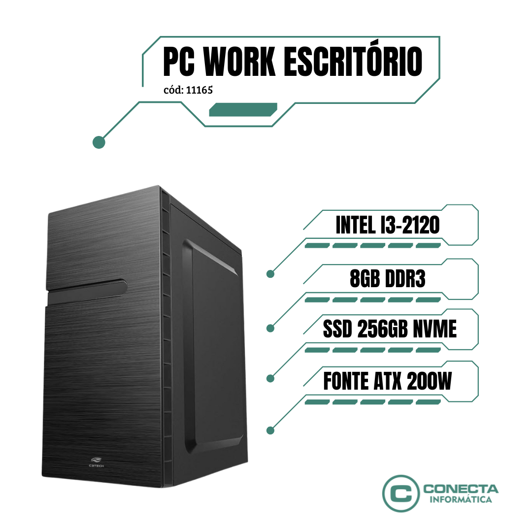 O PC Work equipado com processador Intel Core i3-2120 é uma solução prática e confiável para atividades do dia a dia, oferecendo bom desempenho em navegação, aplicativos de escritório e uso geral. Com memória de 8GB DDR3 e armazenamento em SSD de 256GB NVME, garante maior agilidade na inicialização e execução de programas.