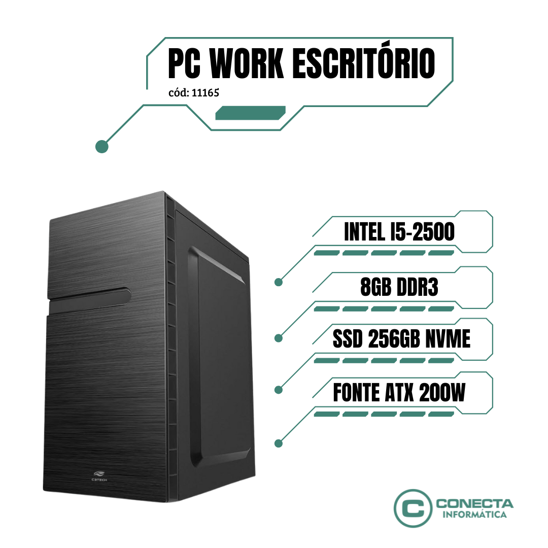 O PC Work com processador Intel Core i5-2500 é uma opção confiável para quem busca desempenho equilibrado para atividades do dia a dia e tarefas multitarefa. Com 8GB de memória DDR3 e SSD de 256GB NVME, oferece inicialização rápida, execução estável de programas e armazenamento eficiente.