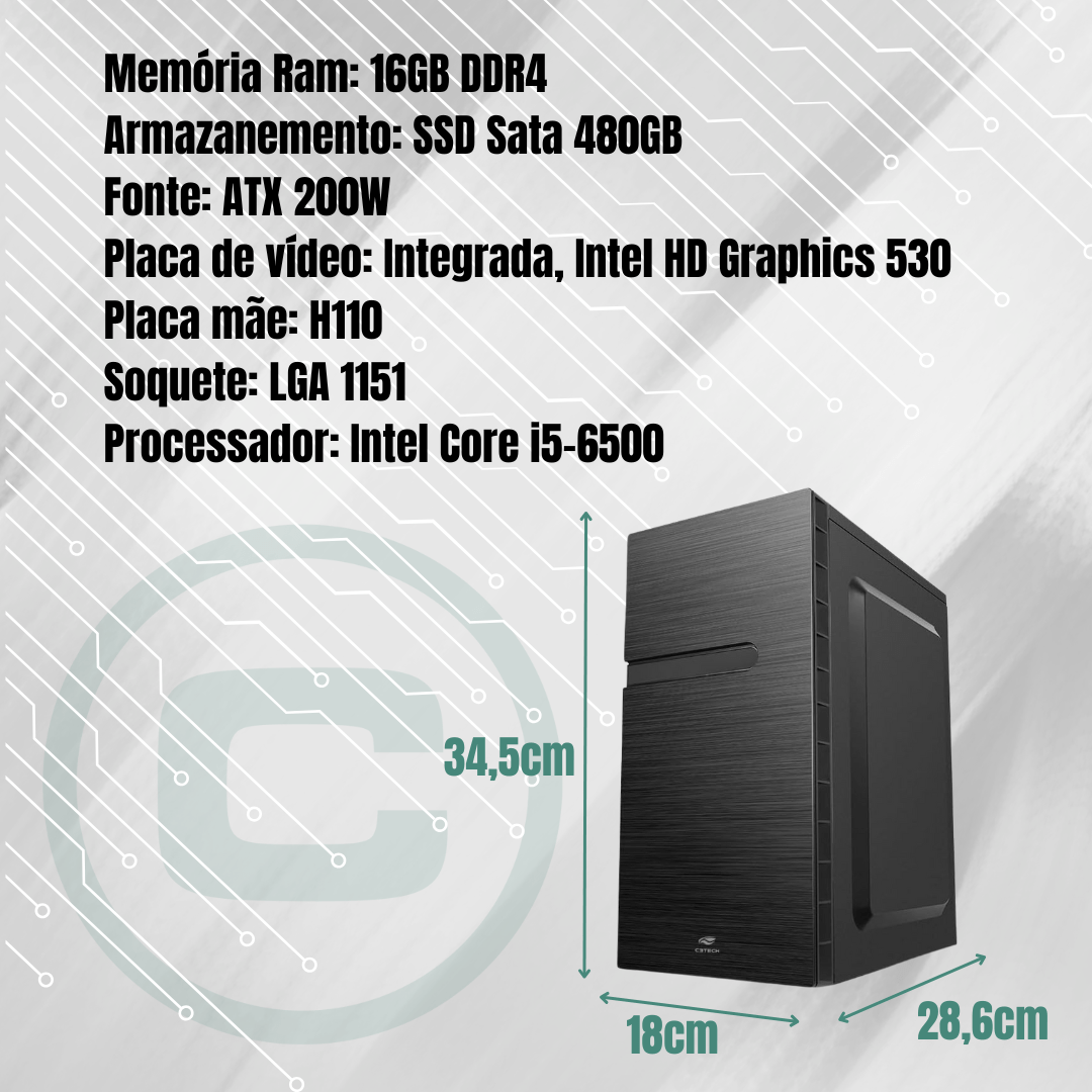 PC Work Intel i5-6500, H110, 16GB DDR4, SSD 480GB, ATX 200W