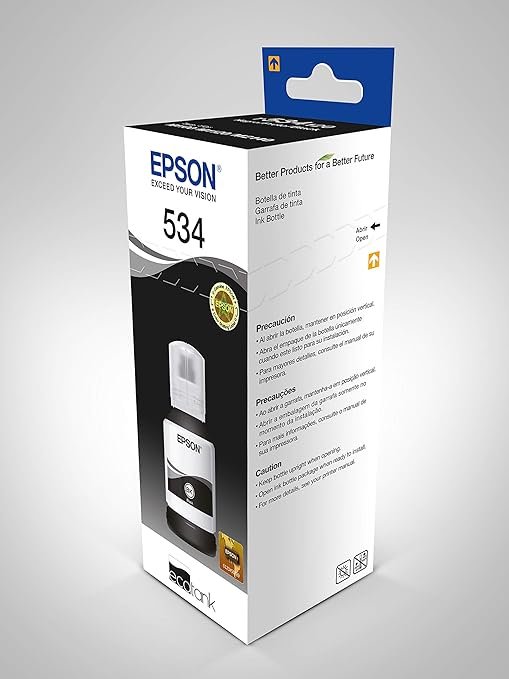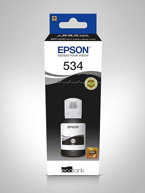 Refil de Tinta Epson T534 T 534 Black para utilização em equipamentos EcoTank com sistema Ecofit M 1120, M 3180, M 2170, M 1180.
