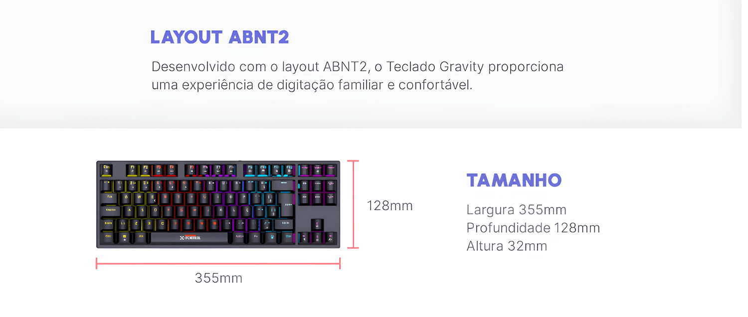 Com um design compacto, alta performance e excelente custo-benefício, o Fortrek Gravity 80 TKL é a escolha certa para elevar sua experiência gamer ou profissional!