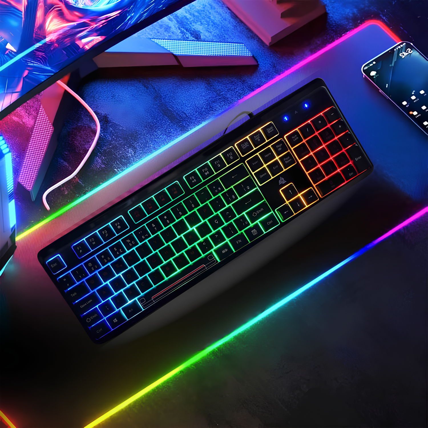 Teclado Gamer Knup KP-TE130 com Retroiluminação Rainbow – Desempenho Silencioso para Todas as Jogadas