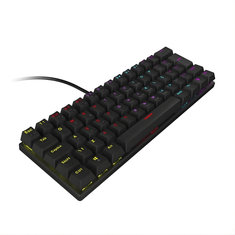 • Formato compacto 60% com apenas 62 teclas