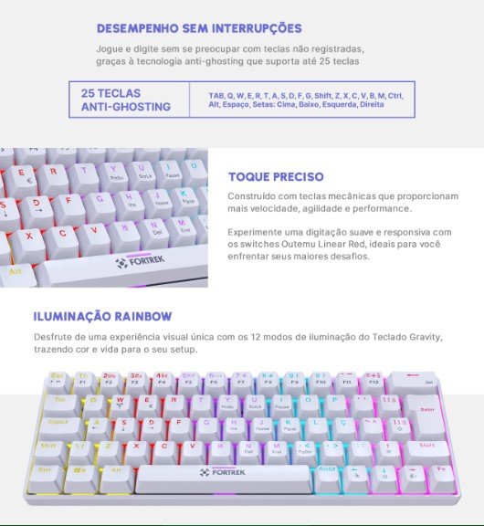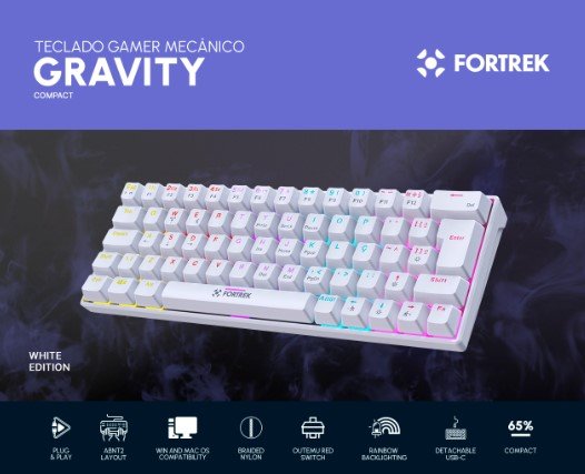 TECLADO MECÂNICO GAMER FORTREK GRAVITY 65 RGB 65% SWITCH OUTEMU RED BRANCO