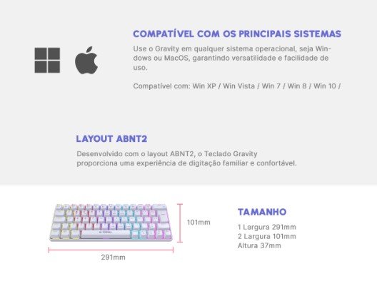 Ideal para setups minimalistas e gamers que priorizam desempenho e estética em um teclado compacto e funcional.