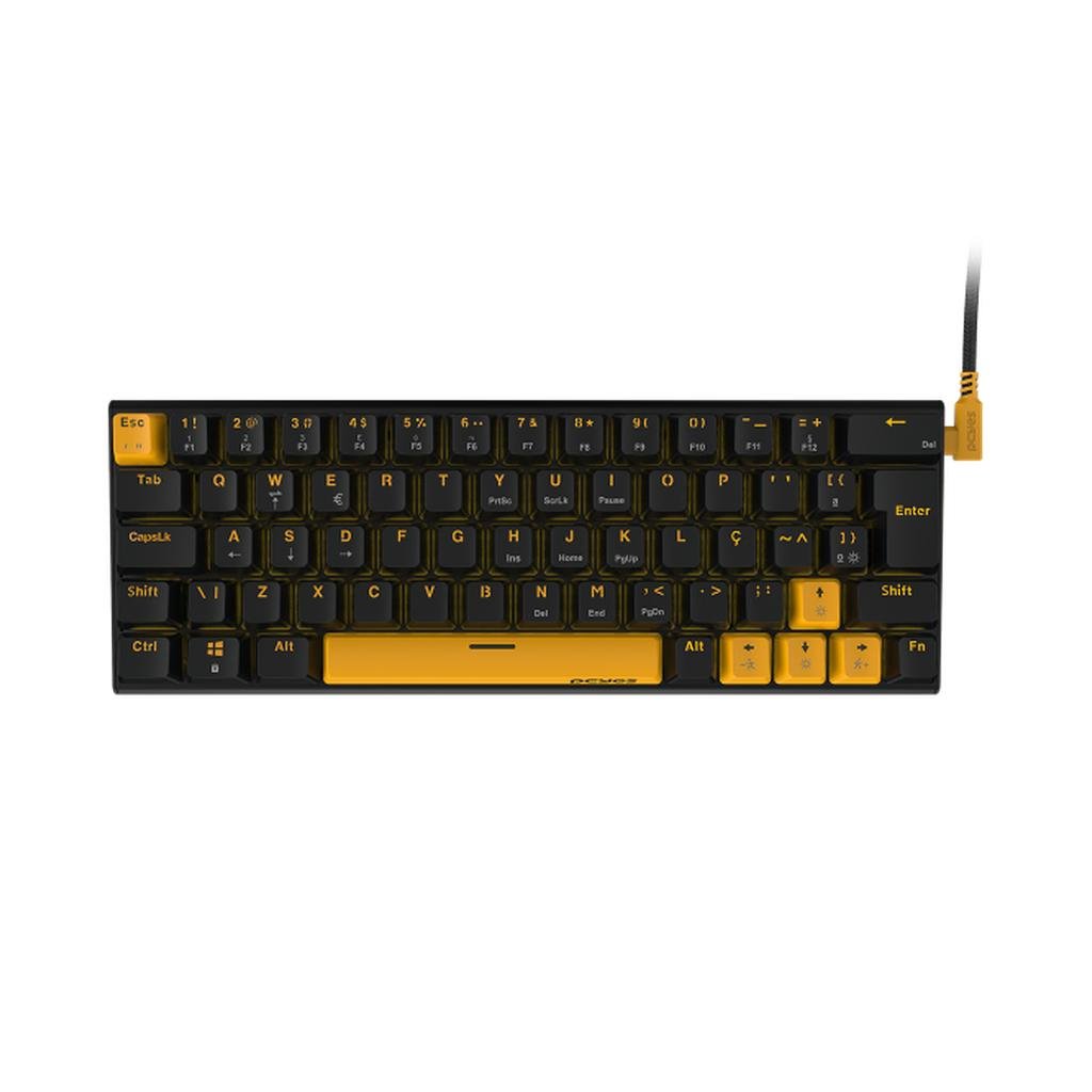 Formato compacto 60%, ideal para setups minimalistas
