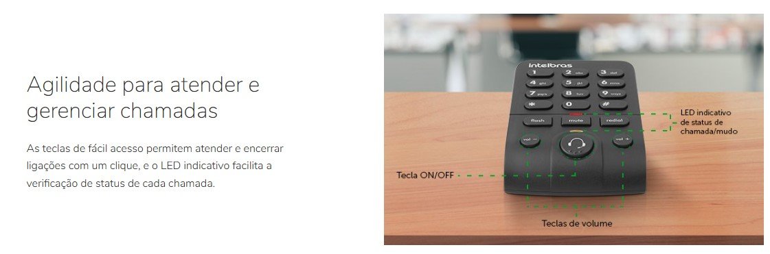 Recursos: Tecla mute, flash, redial, controle de volume
